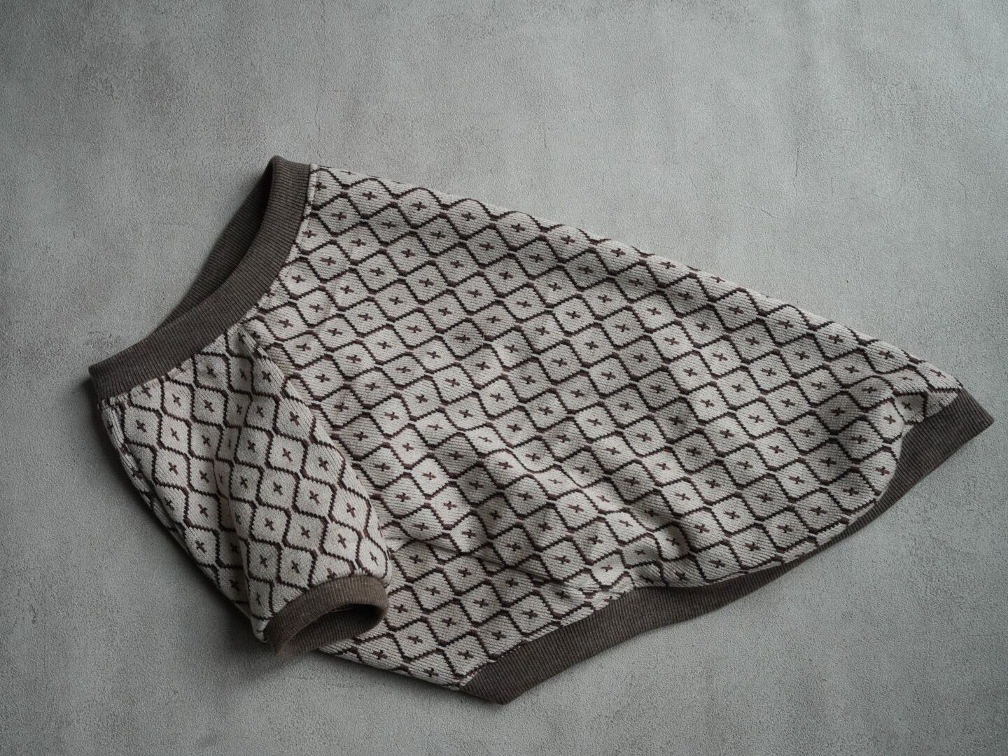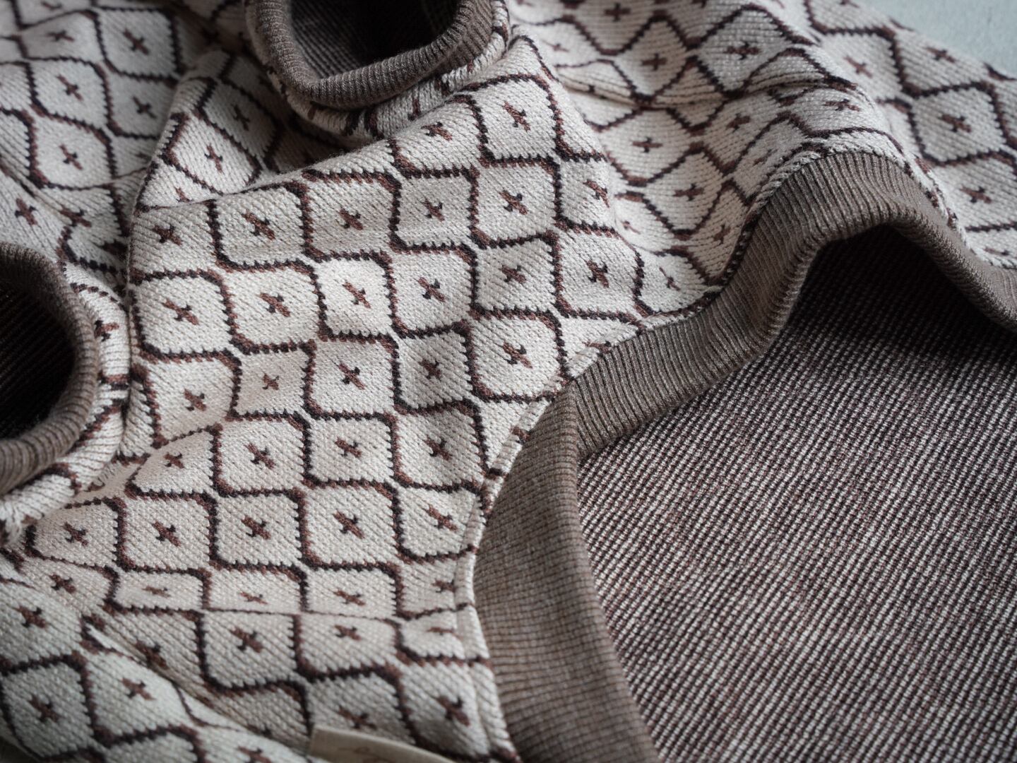 トレリスクロス柄のジャガード生地を使用したニットです。
